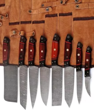 Damascus Steel Blue Hardwood 6 Pieces Leather