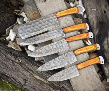 001-05 – Chef Knife Set 15 Hammered Effect Damascus 512 Layers 5 Pieces