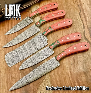 Damascus Steel Red & Brown Hardwood w/Brass Pins 5 Piece