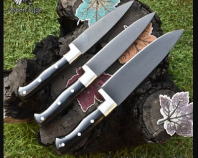 Ashen Edge AUS-10 Steel w/Black Handle 3pc quantity