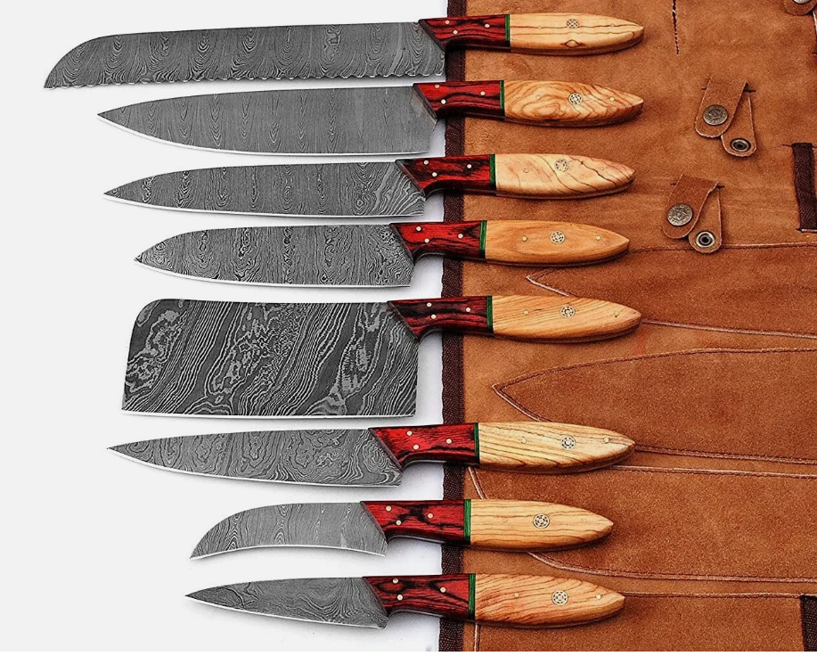 Damascus Blade with Olive Wood Handle 8pc quantity