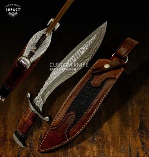 Kukri 3 Damascus UK Stacked Leather