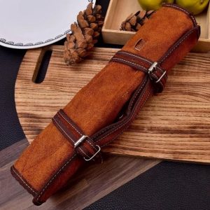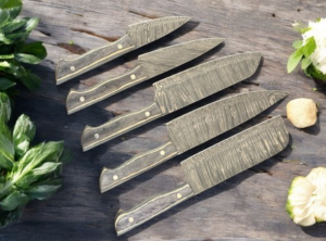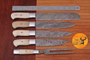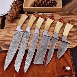 Damascus 6 Piece White Bone and Pakka Leather Case